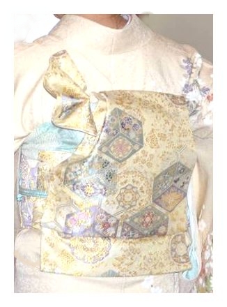 コチラは、ヒダを取らずにそのままのお太鼓にアレンジ。 扇は小さ目がバランスがとれてよいと思います。
