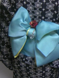 花文庫の上にへこ帯をリボンに結ぶだけで今風のゆかた帯です^^