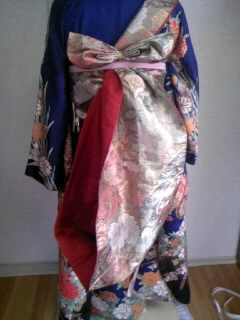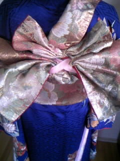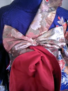 ... | 無地を気にしないで、長い大きな文庫を結ぶ場合もあります。 ここでは、両方を平行して画像を載せています。 * 右の文庫は、全通柄を想定して結びましたから、帯の長さ全部を無駄なく使ってありますので文庫の羽根も長くなりす。 | ![]() |